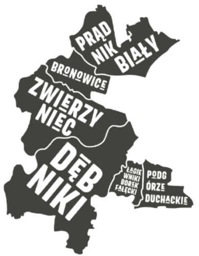 Dzielnice w których odbywają się zajęcia: IV (Prądnik Biały), VI (Bronowice), VII (Zwierzyniec), VIII (Dębniki), IX (Łagiewniki-Borek Fałęcki), XI (Podgórze Duchackie)
